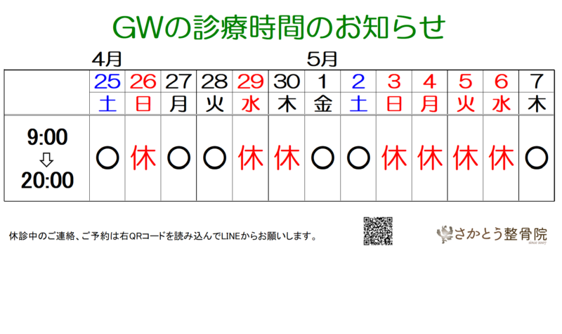 2026年GW期間 診療時間のお知らせ